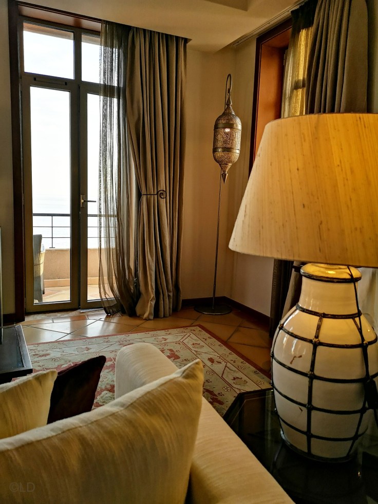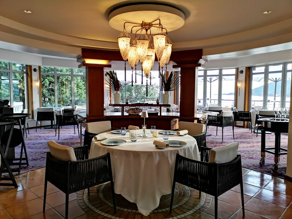 Room of the restaurant ‘Or Bleu’ with its outdoor terrace and panoramic view