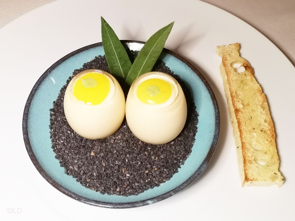 Oeuf: en brouillade, girolle, oeuf de caille au plat et mouillette de focaccia. Greedy, generous, delicious