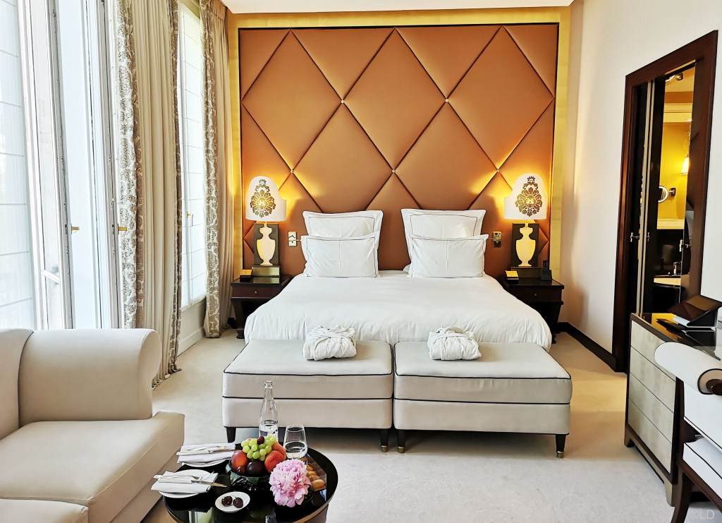 Junior Suite Prestige Champs-Élysées de 50m² donnant sur la plus belle avenue du monde ! Lumineuse et dotée d’une belle hauteur sous plafond, la Junior Suite Prestige Champs-Élysées au style élégant et contemporain est signée par Mr Jacques Garcia architecte décorateur reconnu. La chambre est spacieuse avec un lit kingsize, un espace salon, un bureau, un dressing, et une grande salle de bain avec douche et baignoire.