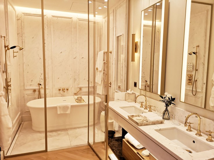 with a lounge overlooking the park and a splendid bathroom made of marble