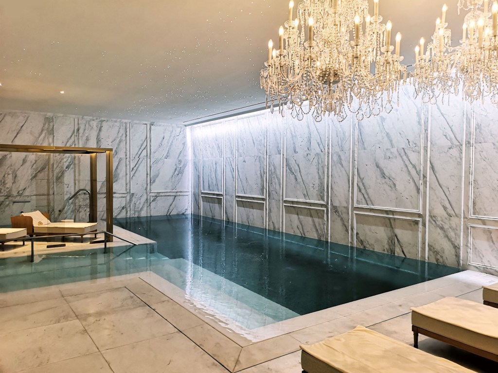 The heated pool, the wall represents »the facade of a lost world » submerged under water,… The facilities of the fitness and wellness center of the Mandarin Oriental Ritz Madrid hotel is a true urban sanctuary in the heart of the city, it has among its facilities a dedicated treatment room, a heated indoor swimming pool and a spa. state-of-the-art fitness center. The Spa offers a range of tailor-made holistic therapies, designed by The Beauty Concept to find a perfect harmony of body and soul. Relaxing and Anti-Stress Treatment, (with Alqvimia ‘Queen of Egypt’ Essential oil blend with a mixture of Myrrh, Incense and violet) for the ultimate tension-busting relief, enjoy a carefully chosen pre-treatment for the skin followed by a relaxing massage. The effects can be felt immediately, as the treatment restores radiance and erases visible signs of fatigue.