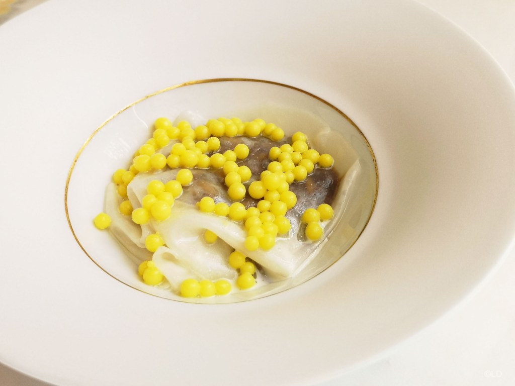 Oyster in celery aspic served with a Japanese Sake Dassai 45; Turbot in sherry sauce served with Pouilly fumé Alphonse Mellot; Morel risotto served with Barbera d’Alba 2017 Mascarello Guiseppe e Figlio Italy. Executif chef Ricard Tobella, Sommelier Gustavo