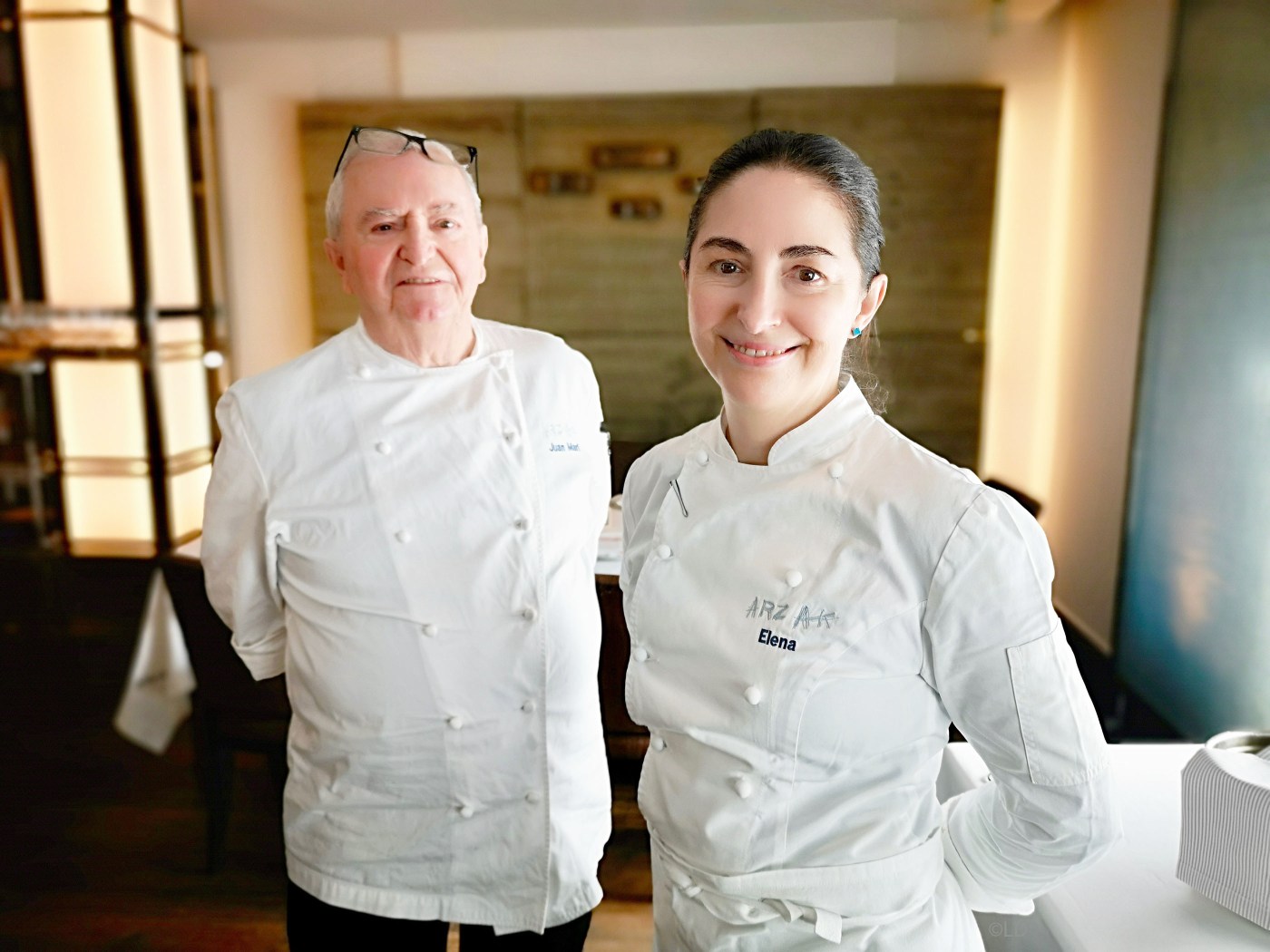 En 1978, il obtient la deuxième étoile Michelin et en 1989, c’est la consécration, la troisième étoile au Guide Michelin. Il a été le deuxième à recevoir une triple reconnaissance en Espagne et les a maintenues depuis. Dans les années 90, Elena, fille de Juan Mari Arzak, rejoint le restaurant familial. Elena a étudié l’hôtellerie en Suisse puis est passée par les grandes cuisines européennes, dont la Maison Troisgros, Pierre Gagnaire, le Carré des Feuillants et Le Vivarois en France, Louis XV à Monte Carlo, Le Gavroche à Londres, Antica Osteria del Ponte en Italie et El Bulli en Espagne. En mai 2001, elle reçoit le prix Chef de l’Avenir de l’Académie Internationale de la Gastronomie. En 2010, l’Académie de la gastronomie espagnole lui a décerné le Prix National de la gastronomie. Et en 2012, elle a été couronnée meilleure femme chef au Monde ‘Veuve Clicquot’. Aujourd’hui, Juan Mari Arzak partage avec Elena la cuisine, les connaissances, la passion et le désir de continuer à écrire l’histoire à Arzak.