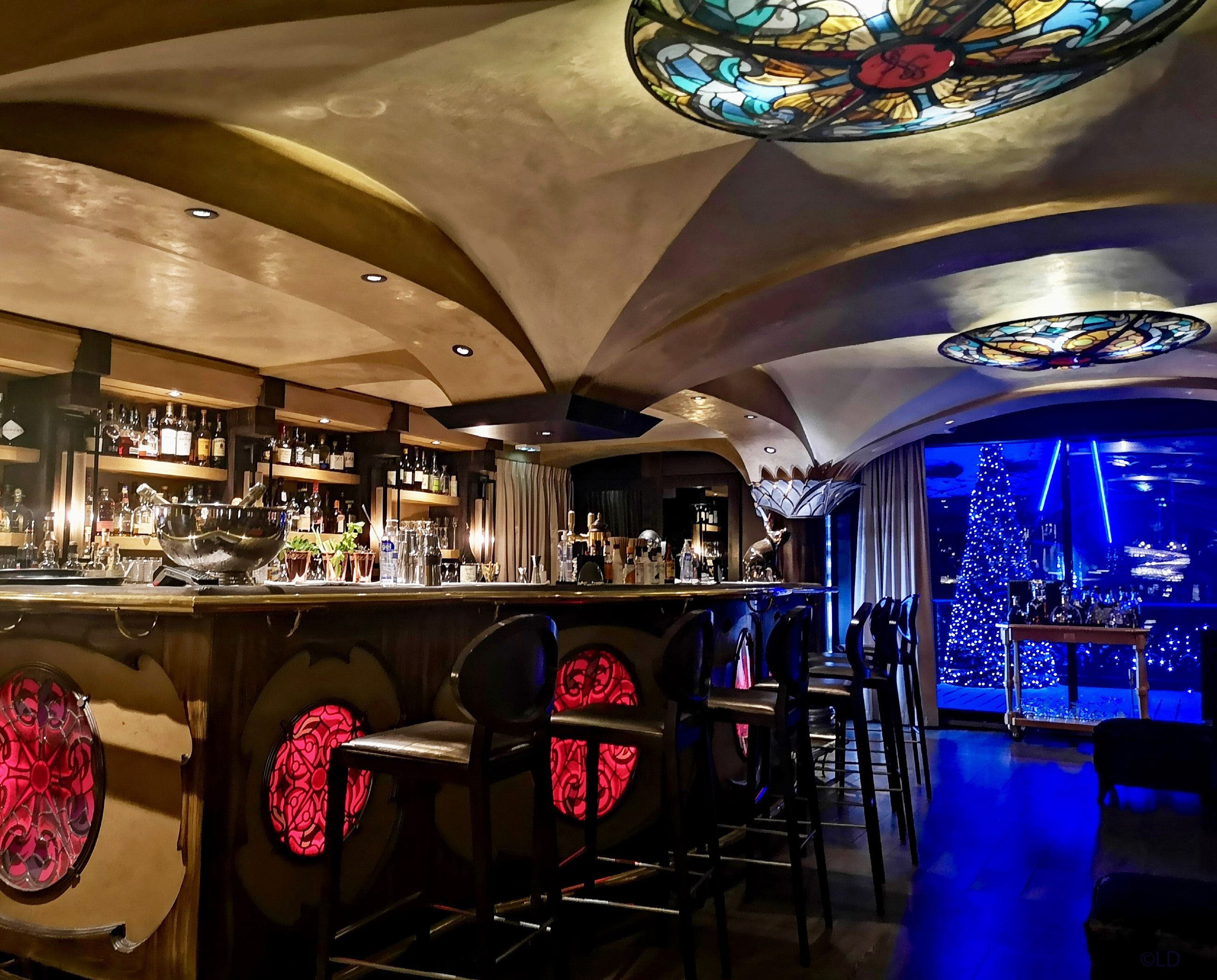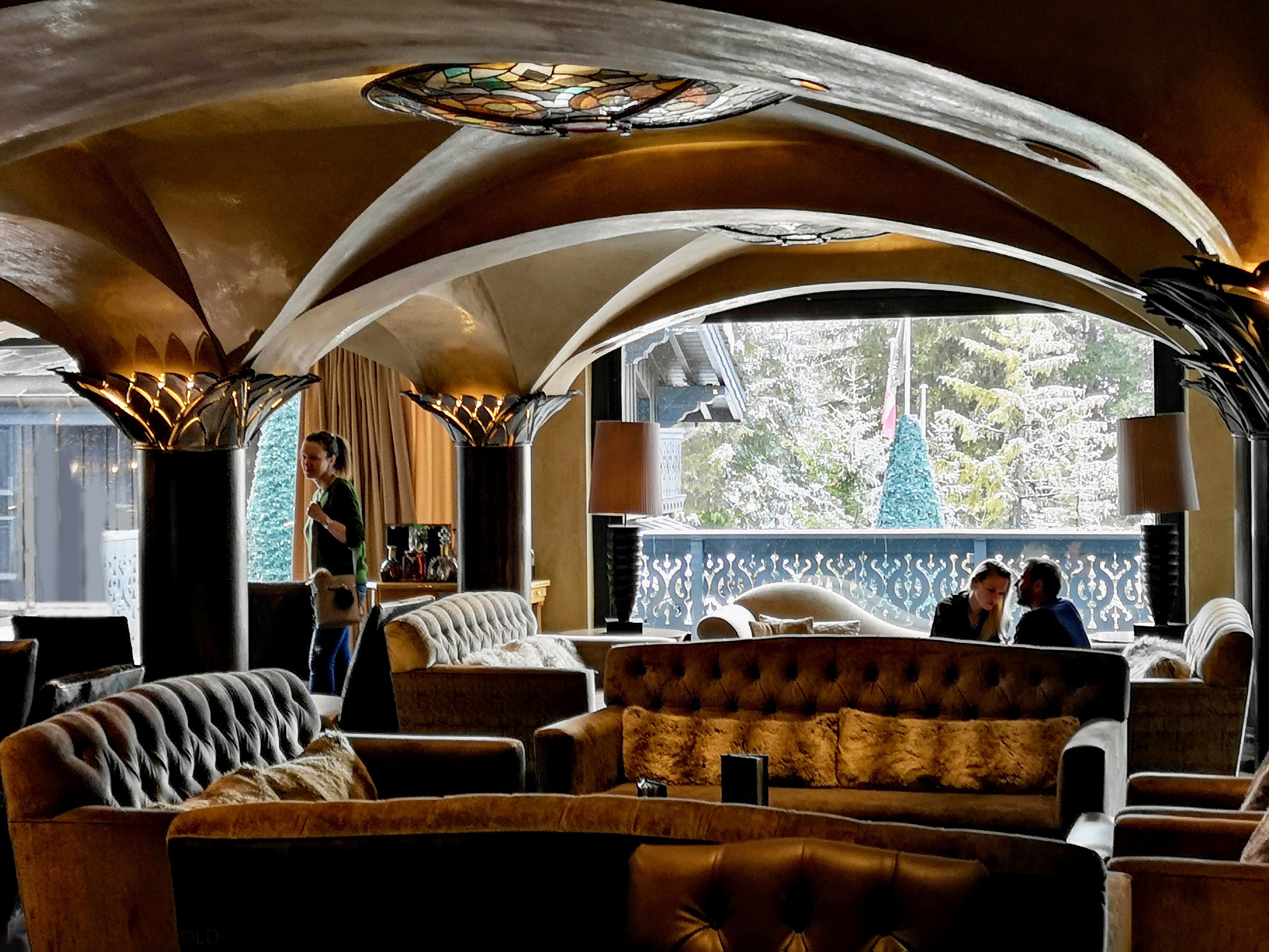 Le majestueux salon lounge bar, le coeur de l’hôtel ! le lieu de rencontre et détente, mais aussi où prendre l’afternoon-tea, le goûter, confortablement installer, avec pour vue l’ours géant de l’artiste sculpteur contemporain, Richard Orlinski, et derrière les célèbres pistes et montagnes de Courchevel 1850 !