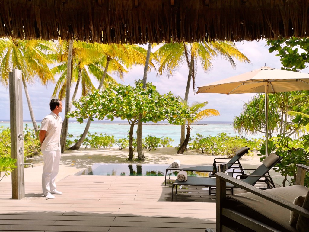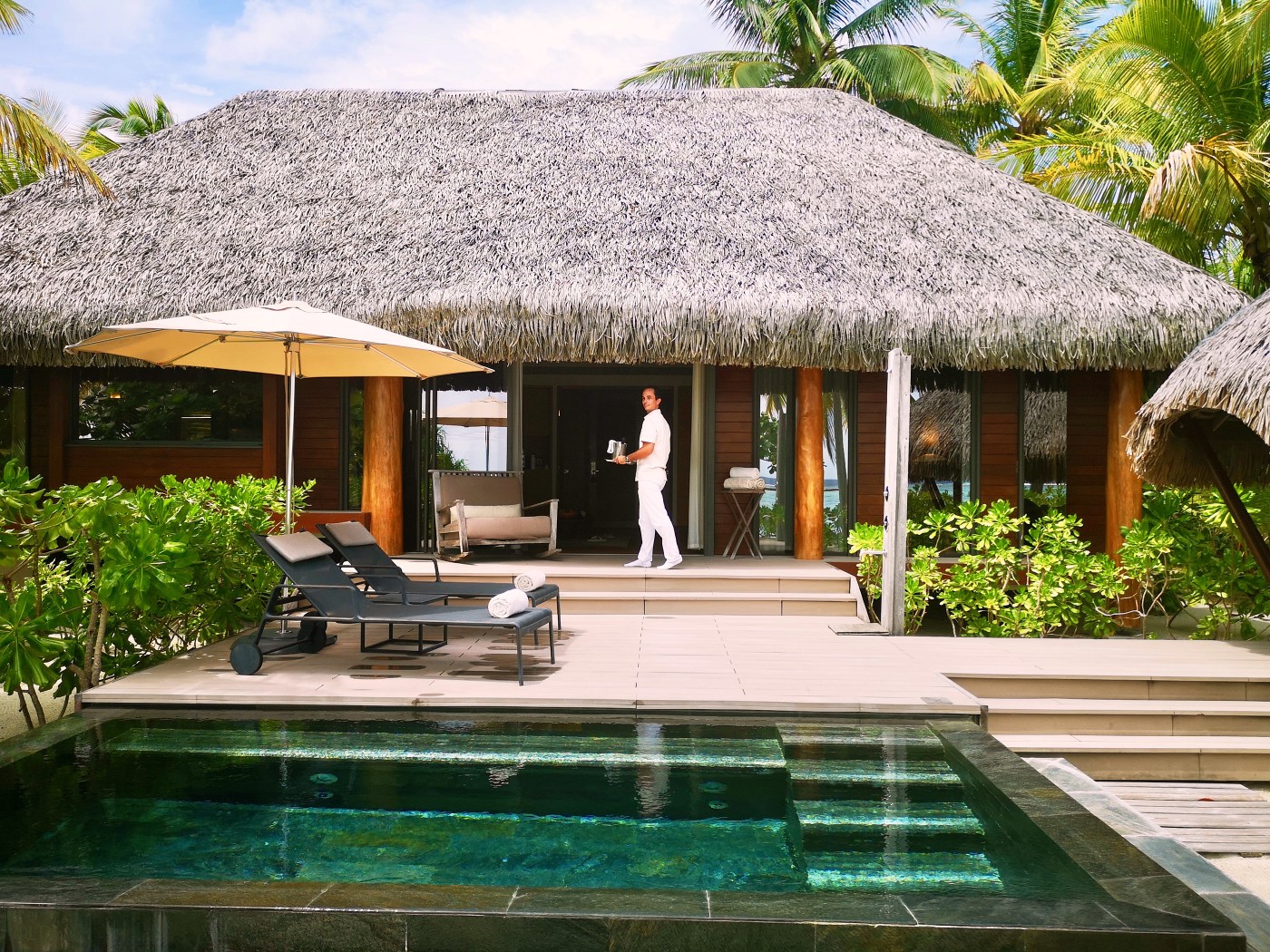 À la descente de l’avion, accueil souriant au son du ukulélé; la villa 208, avec sa terrasse et piscine donnant sur sa plage.