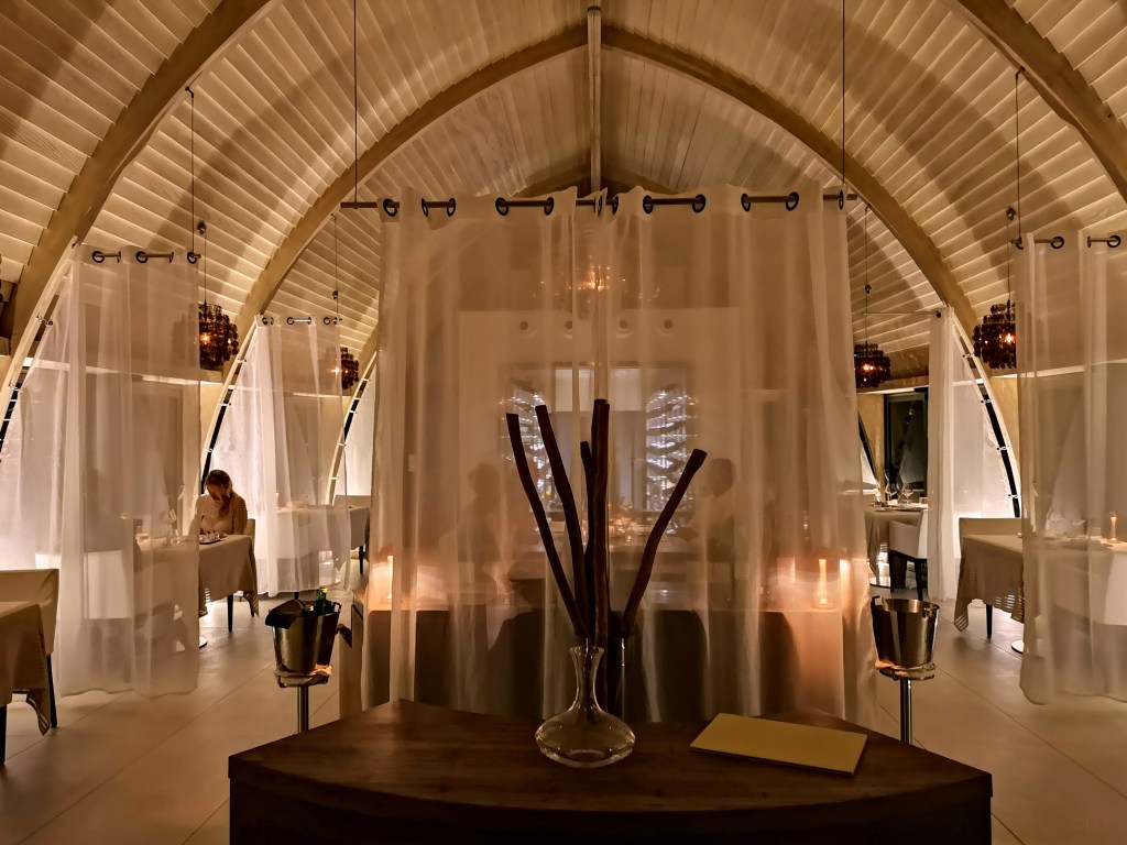 Le Nami, restaurant Japonais teppanyaki, le chef Nakamura propose des plats aux saveurs subtiles, raffinées aux cuissons maitrisées. Les assiettes sont préparés sous vos yeux, les aliments sont cuits sur la plaque de cuisson traditionnelle: teppanyaki. Le Nami offre également une belle sélection de sakés ! Les Mutinés, restaurant gastronomique Français ! C’est dans un décor élégant et raffiné, animé de tonalités sable et lumières douces que ce restaurant intimiste aux allures de pirogue polynésienne renversée vous accueille, le bâtiment est comme posé sur l’eau. La cave du restaurant propose une sélection des meilleurs crus mondiaux !