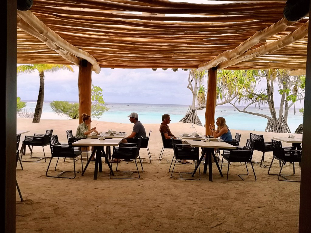 Impressionnante scène ‘cinématographique’ que ce décor naturel de la terrasse du restaurant ‘Beachcomber Café’ au petit-déjeuner !