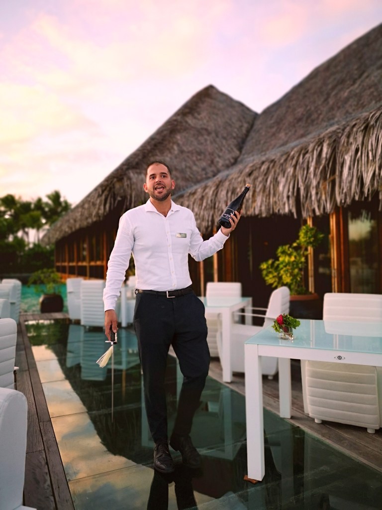 Spectaculaire salle de l’un des meilleurs restaurants gastronomique de la Polynésie Française, le ‘Lagon by Jean-Georges Vongerichten’ est comme ‘flottant’ sur l’eau et offre une vue imprenable sur le mont Otemanu. La cuisine y est raffinée avec des plats savoureux magistralement restitués par le jeune et talentueux chef, ce dernier gère aussi les cartes des restaurants ‘Le Farniente’ et ‘Le Moana night’.
