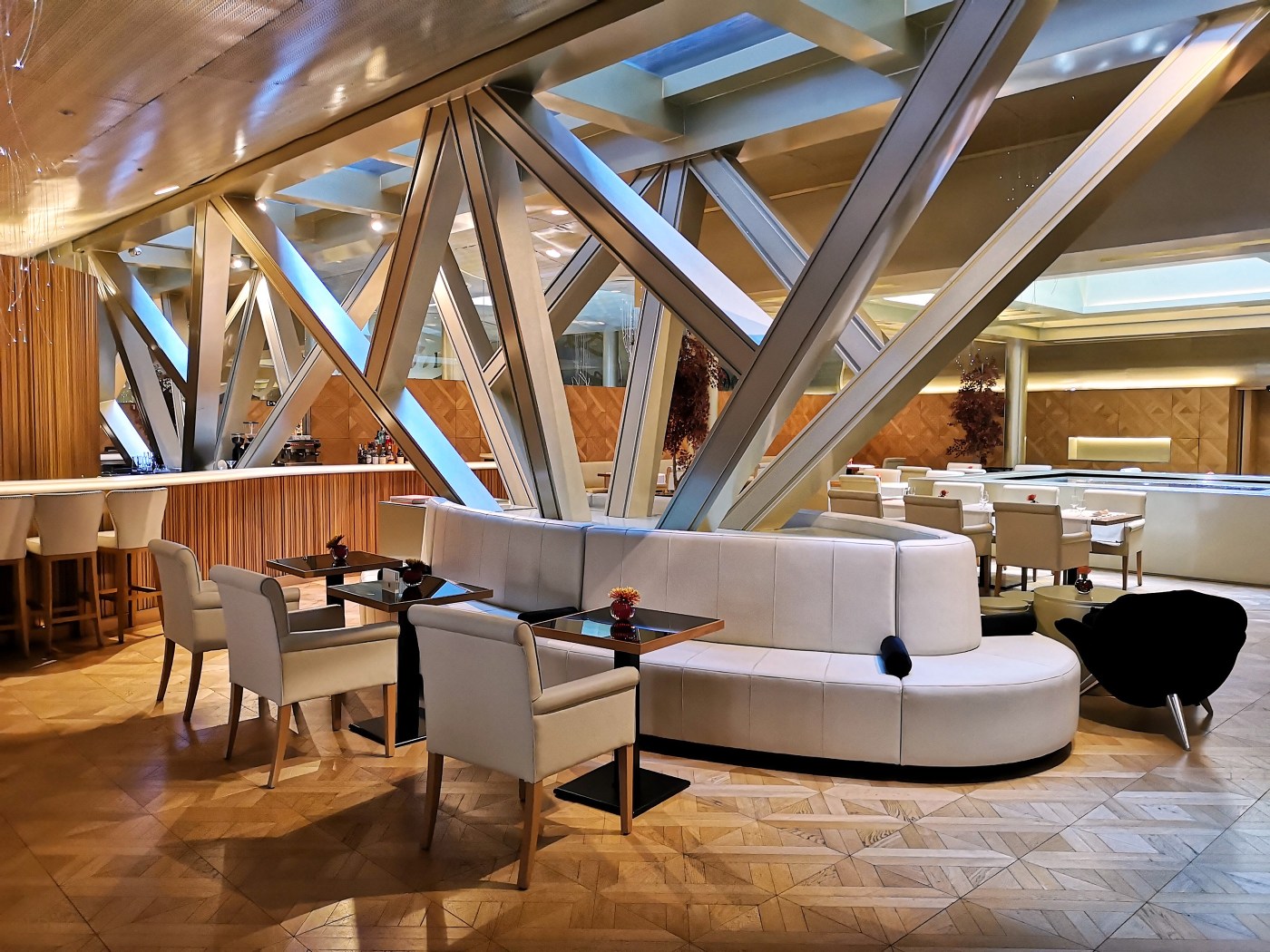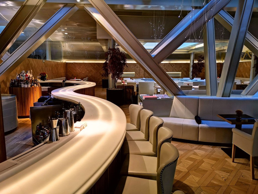 Impressionnante structure métallique de la salle du bar restaurant Oria*. Le Monument Hôtel à Barcelone est l’un des rares établissements au monde proposant plusieurs restaurants étoilés Michelin. Oria représente la dixième étoile Michelin du chef Martin Berasategui. Aucun autre chef d’Espagne ne compte plus d’étoiles au guide Michelin que ce chef originaire du Pays basque.