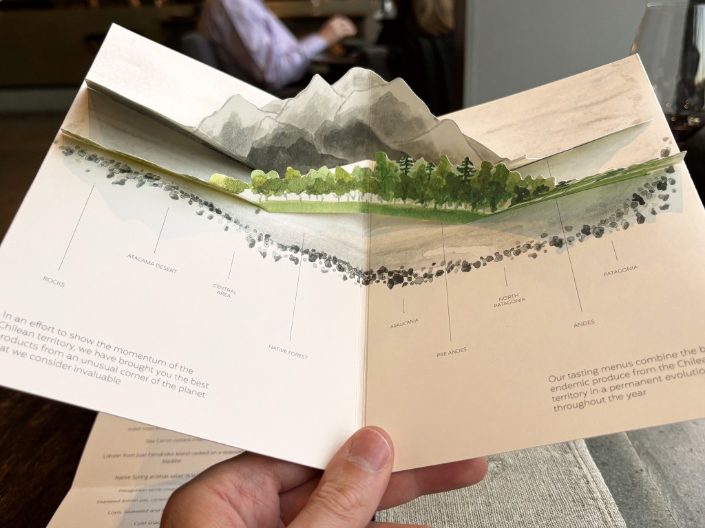 Copihue, seafood garden, cherry and pink tomato; Milcao cooked »al rescoldo » and pajarito butter pairing with Tipaume, red blend, Cachapoal 2013 or Vermouth of forest; also Kollof roots broth, seaweeds and rock plants & Sea carrot custard cream pairing with Peach al rescoldo and kefir Whey
