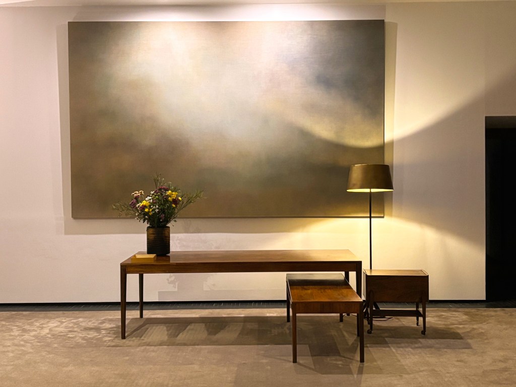Michael Biberstein Blue Glider 2008, in the lobby lounge, a masterpiece painting, halfway between reverie and serenity…