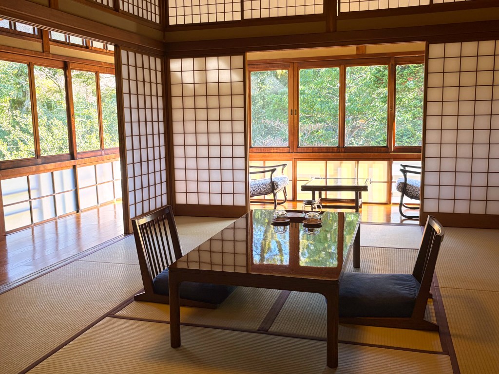 Izu Hot Spring Inn Ochiairo, registered Cultural Property Inn Founded in 1874, Ochiairo is a hot spring inn registered as a national tangible cultural property, nestled on the banks of the confluence of two rivers and surrounded by the majestic mountains of Izu and Amagi. We will continue to provide hospitality to you, carrying on our 150-year history. A spiritually enriching inn beloved by great literary figures throughout history Ochiairou as a whole Founded in 1874 (Meiji 7), Ochiairou was named by former shogunate retainer Yamaoka Tesshu because it is located on the banks of the confluence of two rivers . In the Meiji era, Tayama Katai and Shimazaki Toson were guests. In the Taisho era, Kawabata Yasunari and Kajii Motojiro. In the early Showa era, famous writers such as Wakayama Bokusui and Kitahara Hakushu loved this inn and indulged in writing here. Surrounded by the majestic mountains of Izu and the murmuring of the stream, you can relax both body and mind as you enjoy the leisurely flow of the river. A hot spring inn that is a cultural asset where you can experience the craftsmanship and sophistication of artisans Ochiairo Corridor Ochiairo is a registered tangible cultural property created by the finest craftsmanship of the time. The main building is an elegant structure made with rare woods such as black persimmon and rosewood , while the Minuntei Pavilion is built in the style of a sukiya -zukuri building, giving it a bright and soft atmosphere.Enjoy the elaborate decorations and intricate craftsmanship throughout the guest rooms, staircases, corridors and more. You can also enjoy the architectural beauty of Ochiairo on a cultural heritage tour. Comfortable hospitality that caters to everyone Ochiairou Entrance « welcome home. » Perfect for a family trip with your loved one, your partner, or your children, or for a relaxing stay by yourself. At Ochiairo, they strive to provide a relaxing and comfortable stay that makes you feel like you’re back home.